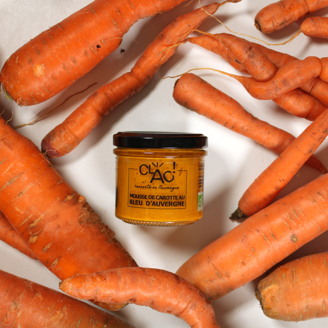 Aujourd’hui, la carotte est devenue une signature CLAC. Déclinée en deux tartinables emblématiquesmousse de carotte agrumes et cumin et carotte au bleu d’Auvergne — ainsi qu’en velouté de carotte à l’orange, elle incarne à elle seule notre vision : sauver, sublimer, transmettre de la gourmandise.